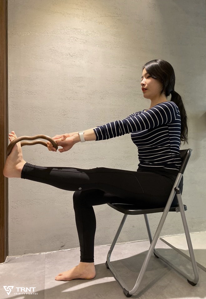 한쪽 다리 발목을 반대쪽 다리 무릎위에 올리고